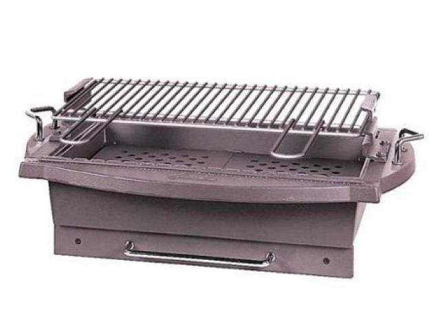 Гриль из чугуна, с вертелом с мотором на батарейке, с выдвижным зольником